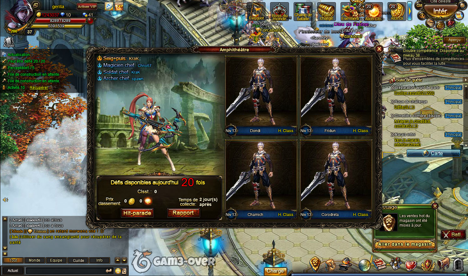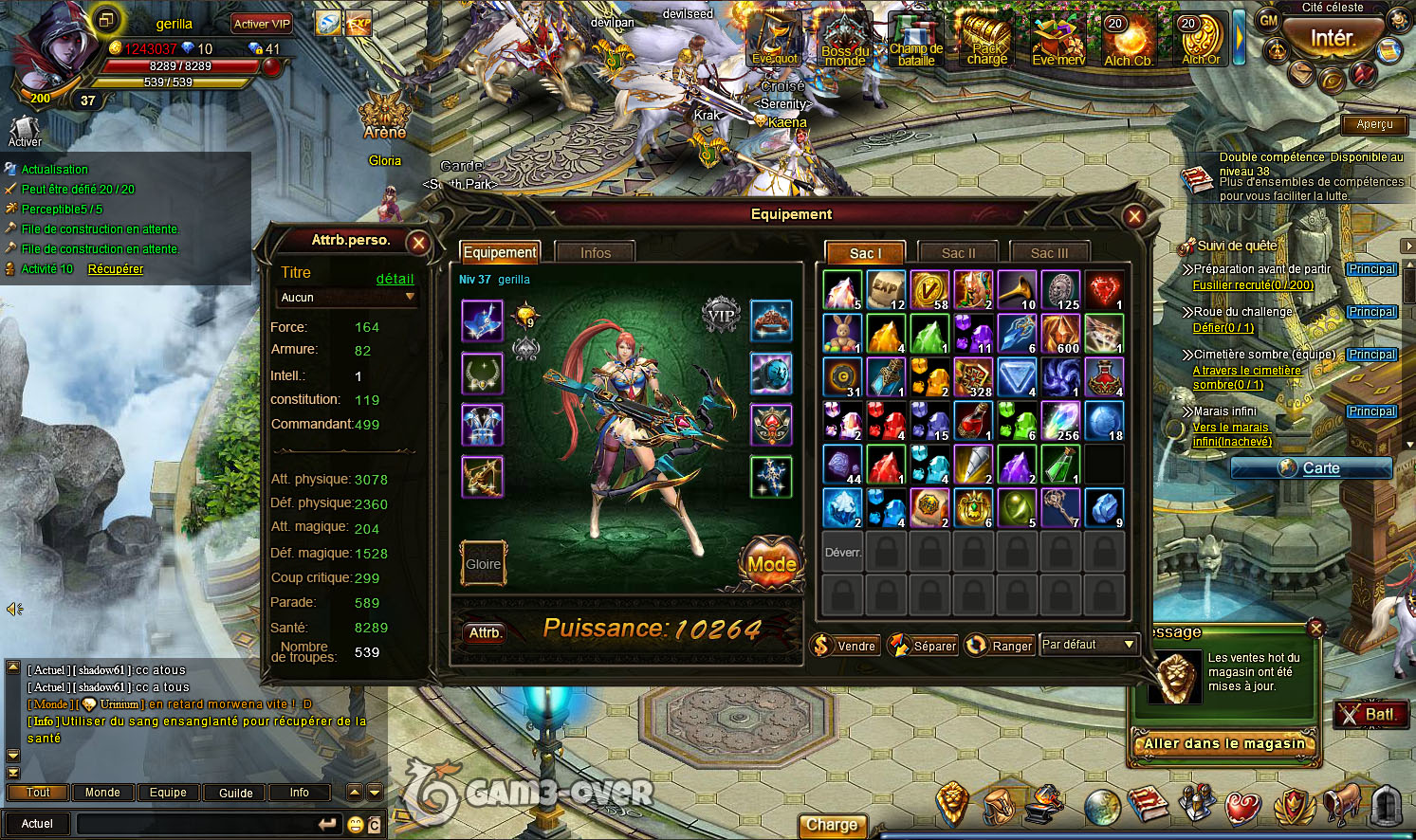Et comme tous bon MMORPG, il est possible de participer à des activités multijoueurs comme des batailles contre des Boss du monde (environ 3 par jours à des heures précises), des champs de bataille, faire des donjons à plusieurs, du PVP en arène, piller les villes voisines ainsi que des guerres de guildes!