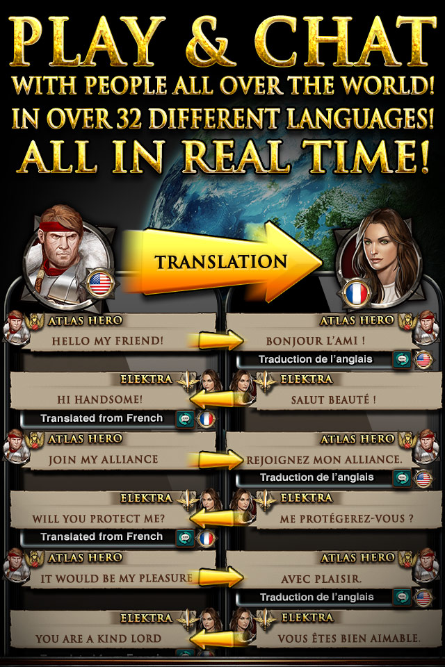 - PARLEZ ET PLANIFIEZ votre stratégie avec votre ALLIANCE et vos AMIS avec le CHAT : chat d’alliance, chat entre deux personnes, ou chat avec le monde entier. Collaborez avec vos amis ou faites taire et incendiez vos ennemis !