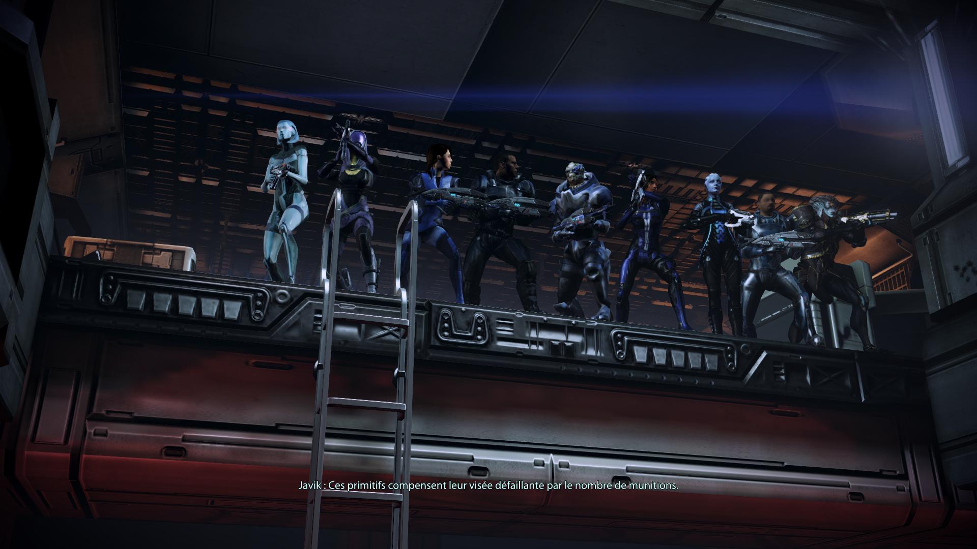 Notons que ce DLC met un énorme accent sur l’humour ! Répliques dignes des comédies américaines classiques, burlesques, taquineries, tout est fait pour alléger l’atmosphère et tentez de faire oublier la guerre qui gronde. Ce n’est pas mal fait, mais ça pose un petit problème : ça ne correspond parfois pas vraiment, voire pas du tout, à votre personnage. Je m’explique : j’avais une Shepard badass, une femme dure à cuire qui n’a que deux règles dans sa vie : « La mission à tout prix » (pragmatique donc), et « Mon équipage c’est ma famille. On s’en prend à eux, on s’en prend à moi ! ». Oui j’aime bien jouer le roleplay à fond, m’inventer des petits backgrounds. Autant vous dire qu’à part certain moment de tendresse avec ma belle Liara, Shepard « made in Jarps » ne savait ni sourire ni rigoler. Et là, elle blague à tout vas, charrie ses camarades, se permet des réflexions comiques dans les situations les plus critiques… Moi je rigolais un peu, mais je ne reconnaissais pas vraiment mon personnage.