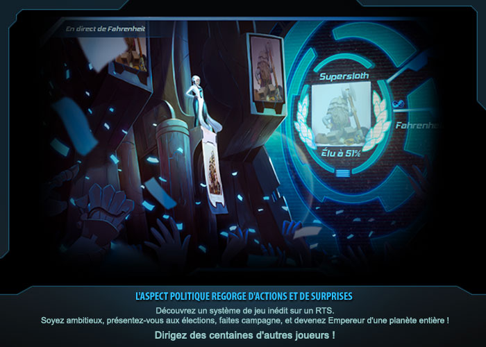 Mais le GRAND + de SpaceOrgin, c’est son système politique ! Vous devrez élire chaque mois des joueurs pour gouverner la planète. Chaque joueur vivra l’expérience des grandes campagnes électorales de SO.